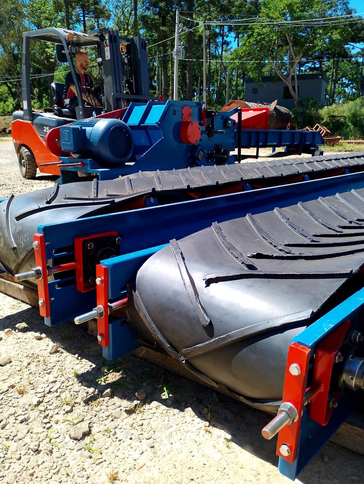 Esteira de entrada com 3 metros de comprimento, espessura da correia 8mm